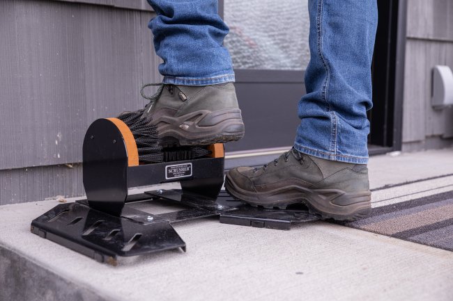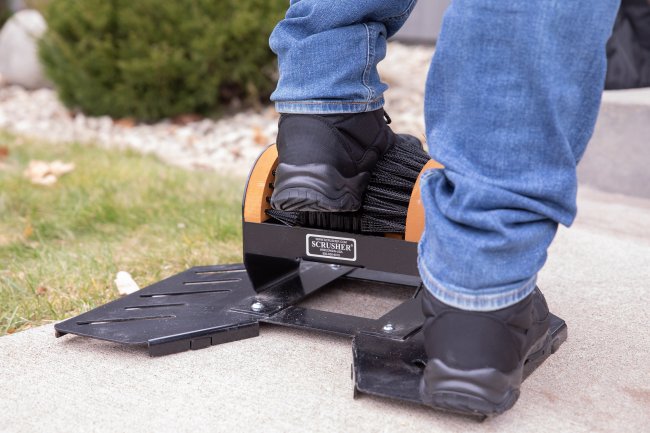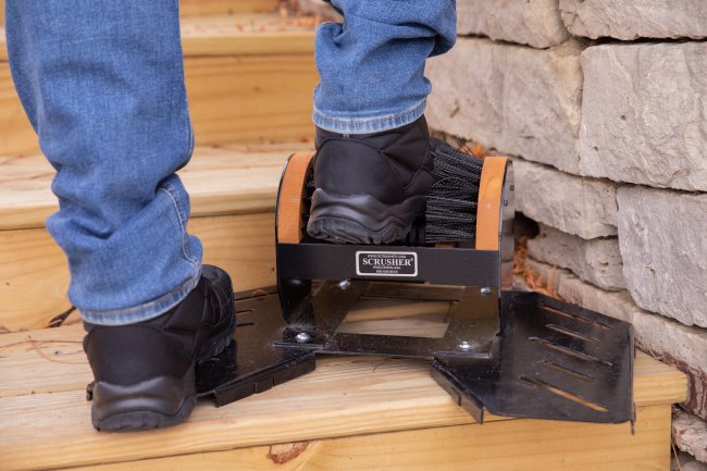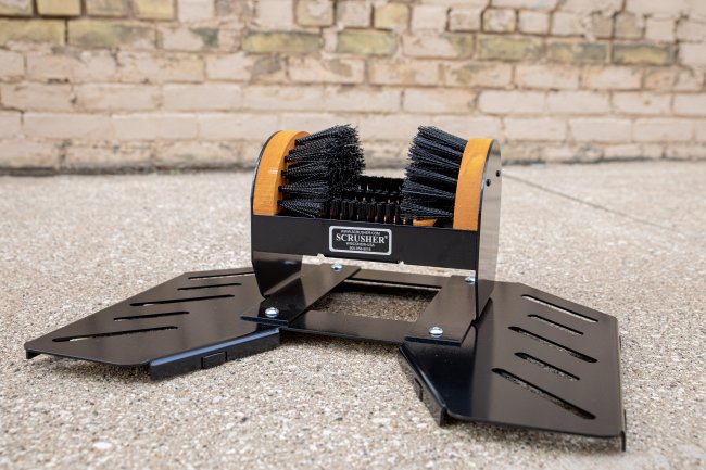 The Deluxe Scrusher boot cleaner is excellent for garages, barns, ranches and shop areas. Even the thickest mud doesn't stand a chance against the three sets of boot brushes on the bottom of the Deluxe SCRUSHER®.