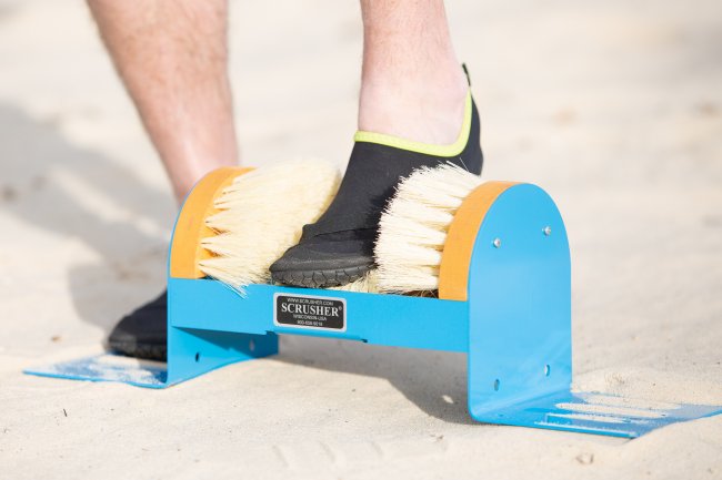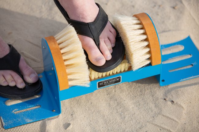 Introducing our latest addition to the SCRUSHER® family – Sandy, the Sand & Beach SCRUSHER®. It has the same great features as the Big Boot SCRUSHER® but designed to deliver a gentler touch with a more vibrant look. The Sandy SCRUSHER® has the softest bristles we've ever used. All five brushes are equipped with soft bristles made from Tampico, a natural fiber renowned for its excellent water-wicking properties and its ability to effectively remove sand.
